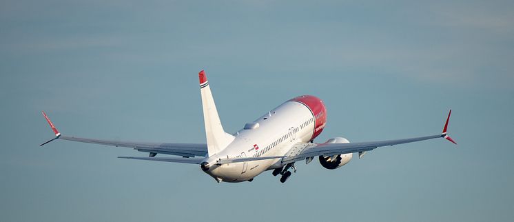 Norwegians första svenskregistrerade flygplan på väg från Boeingfabriken i Seattle (Boeing 737 MAX 8)
